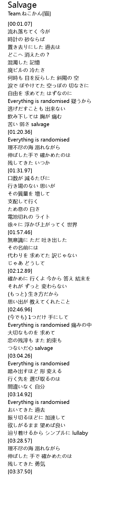 | [02:53.65] | Everything is randomised 痛みの中 |