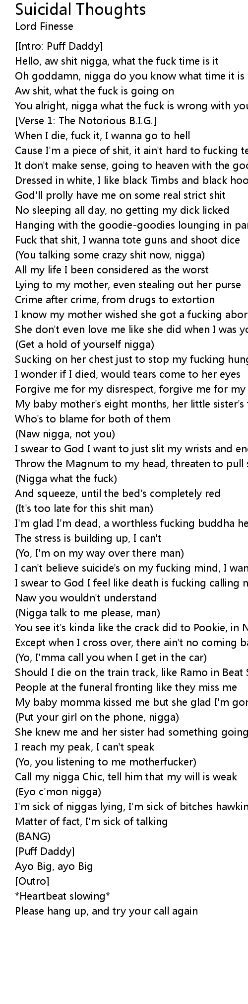 I can't believe suicide's on my fucking mind, I wanna leave |
