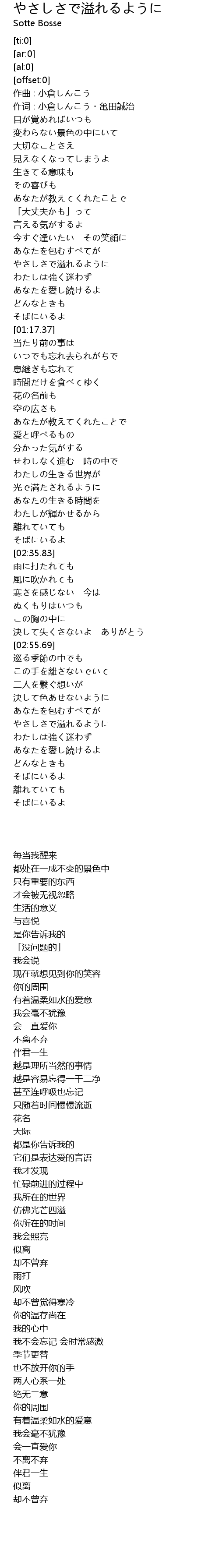 | [03:24.92] | やさしさで溢れるように |