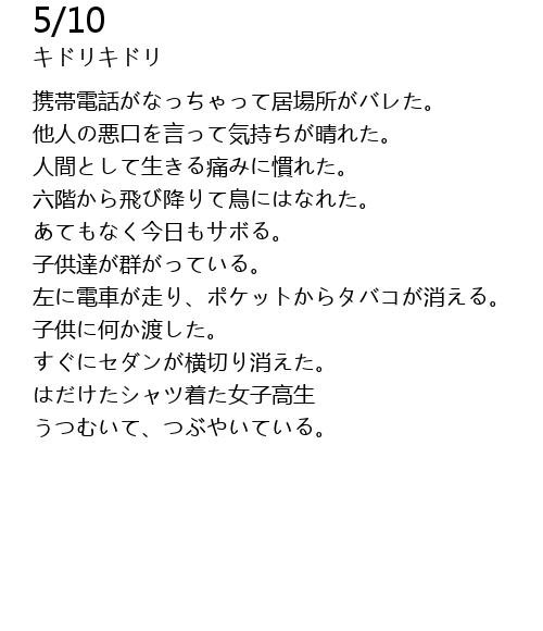 | 六階から飛び降りて鳥にはなれた。 | |
