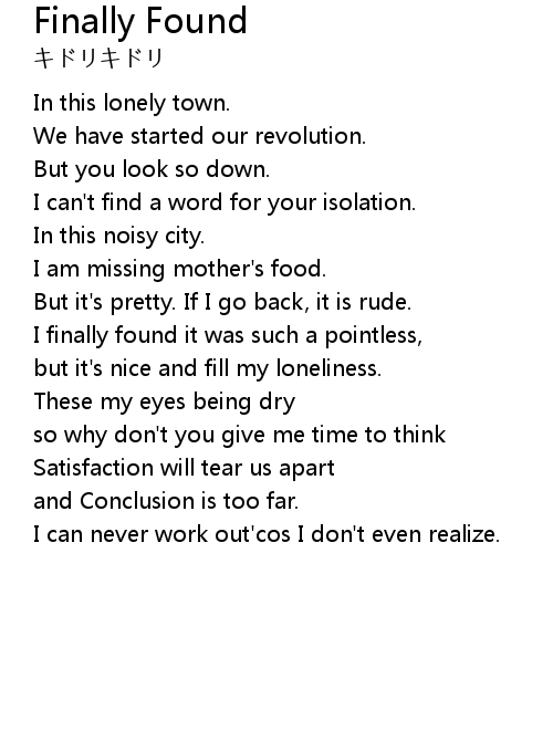| 歌曲 | Finally Found |