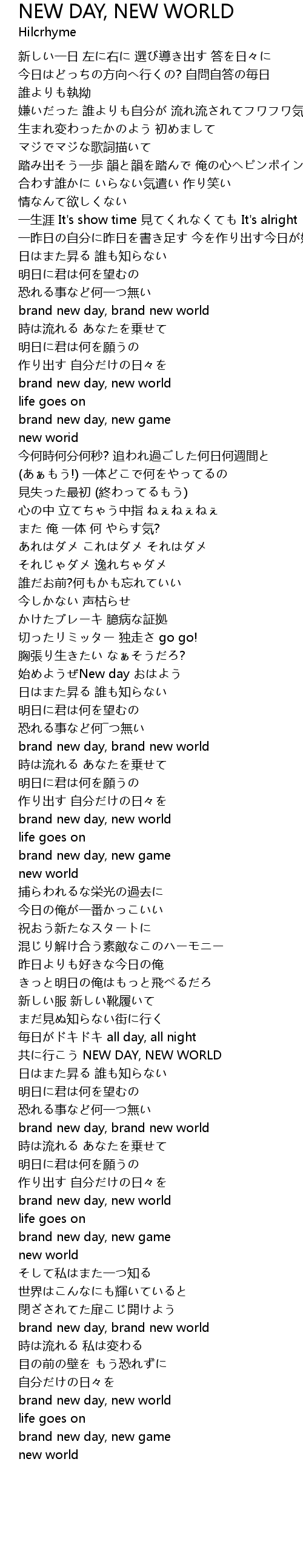 | 歌曲 | NEW DAY, NEW WORLD |