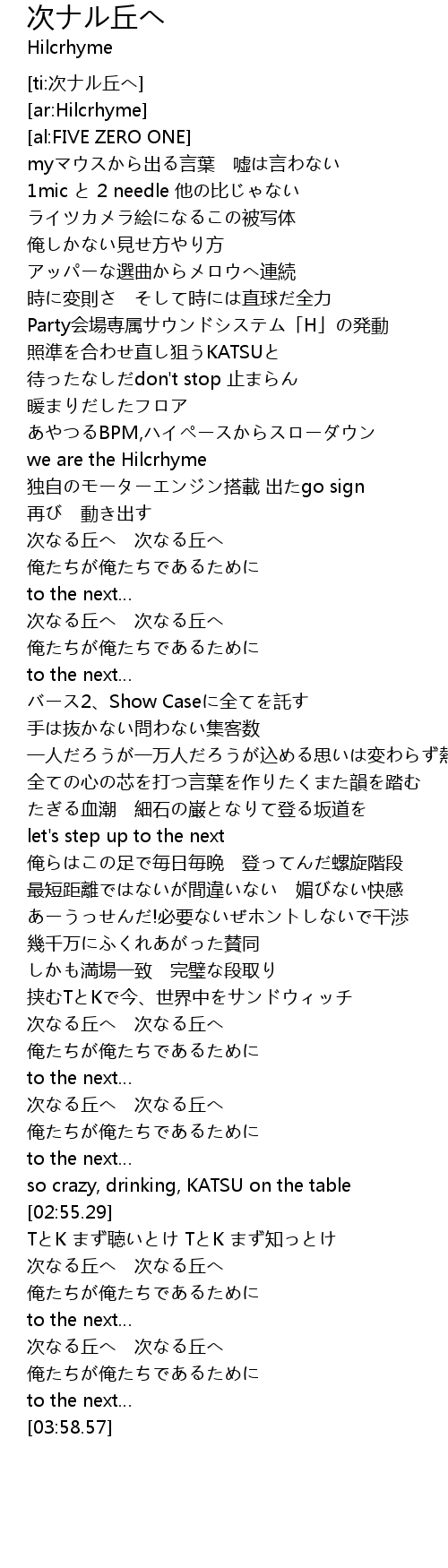 | [ti:次ナル丘へ] | |