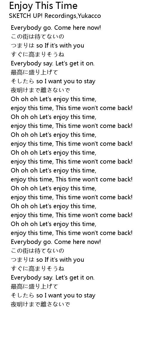 | [00:49.305] | Oh oh oh Let' s enjoy this time, |