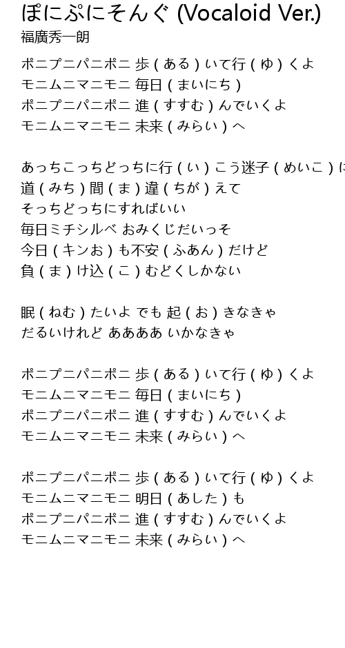 | 歌曲 | ぽにぷにそんぐ (Vocaloid Ver.) |