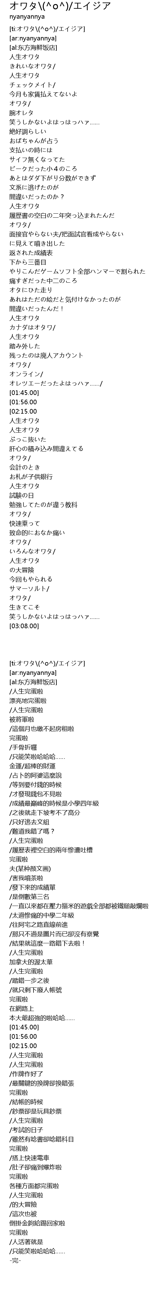 | [03:01.50] | オワタ/ |