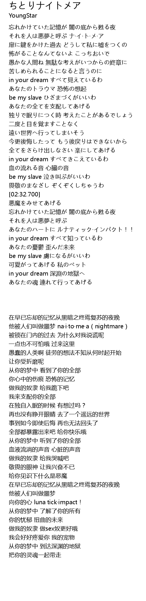 | [02:20.700] | be my slave 泣き叫ぶがいいわ |