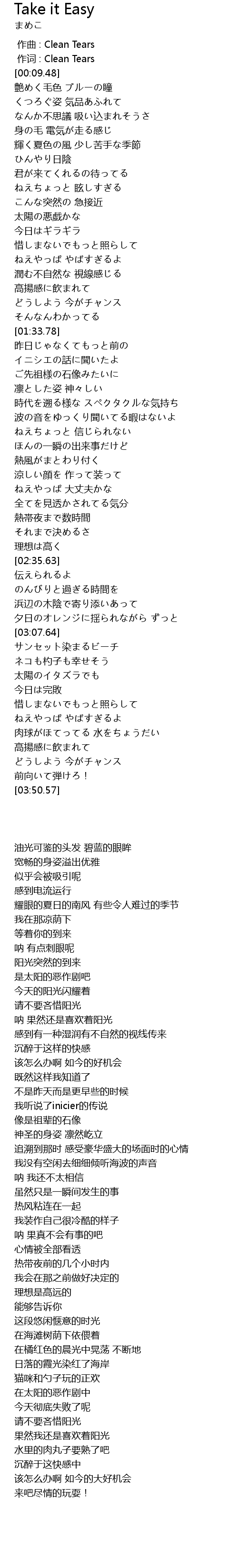 | [00:00.00] | zuò qǔ : Clean Tears |