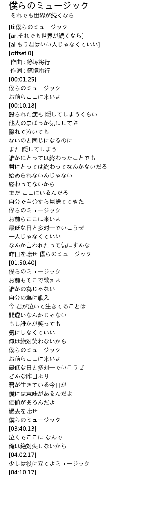 | [ti:僕らのミュージック] | |