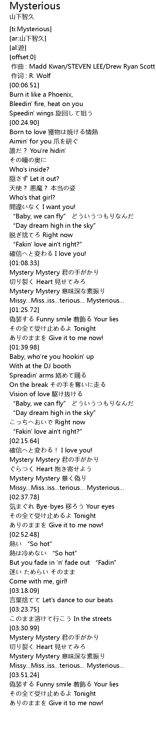| [03:48.75] | Missy…Miss..iss…terious… Mysterious… |