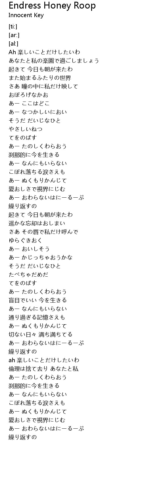 あー おわらないはにーるーぷ |