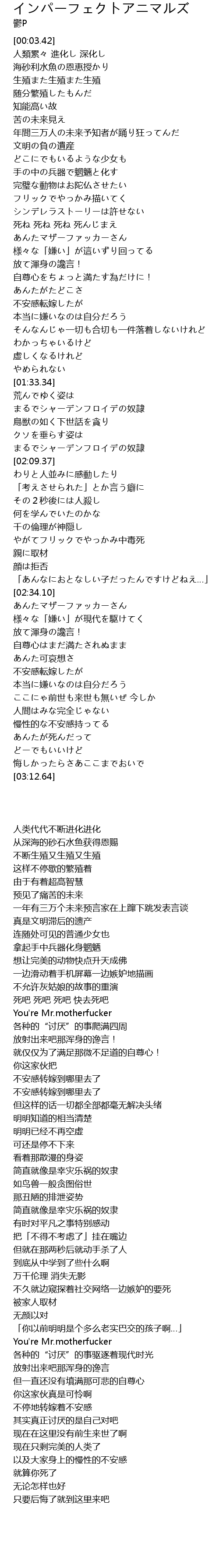 | [00:50.64] | 想让完美的动物快点升天成佛 |