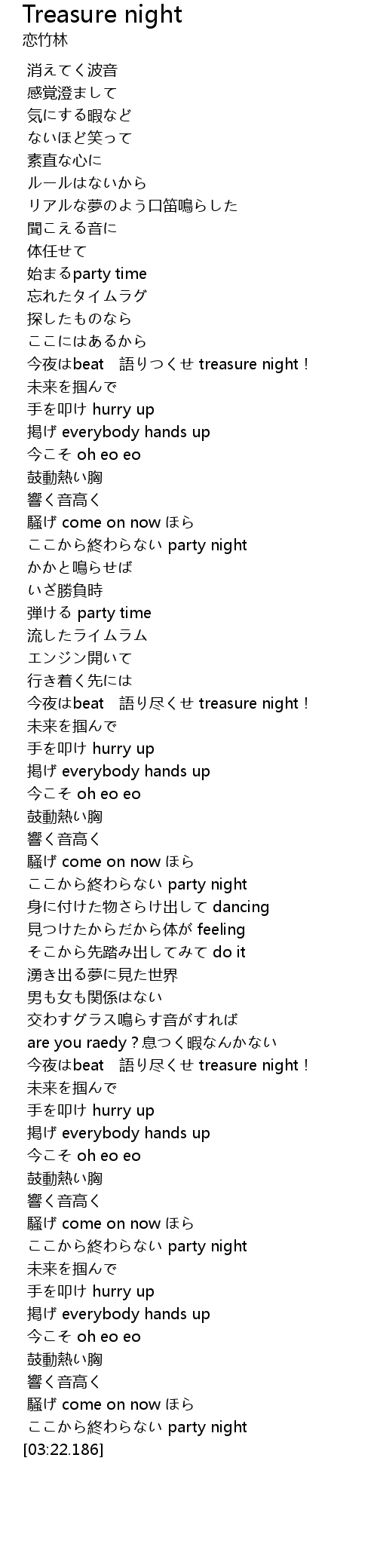 | [03:18.835] | ここから終わらない party night |