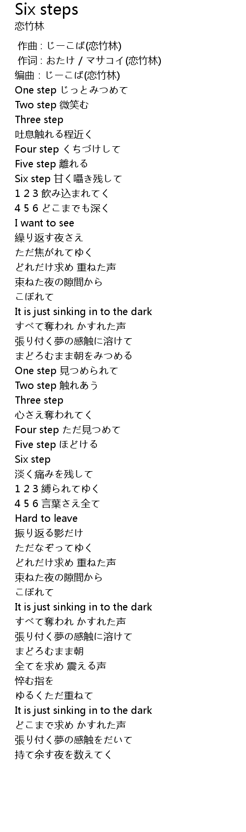 | [00:56.46] | Six step 甘く囁き残して |