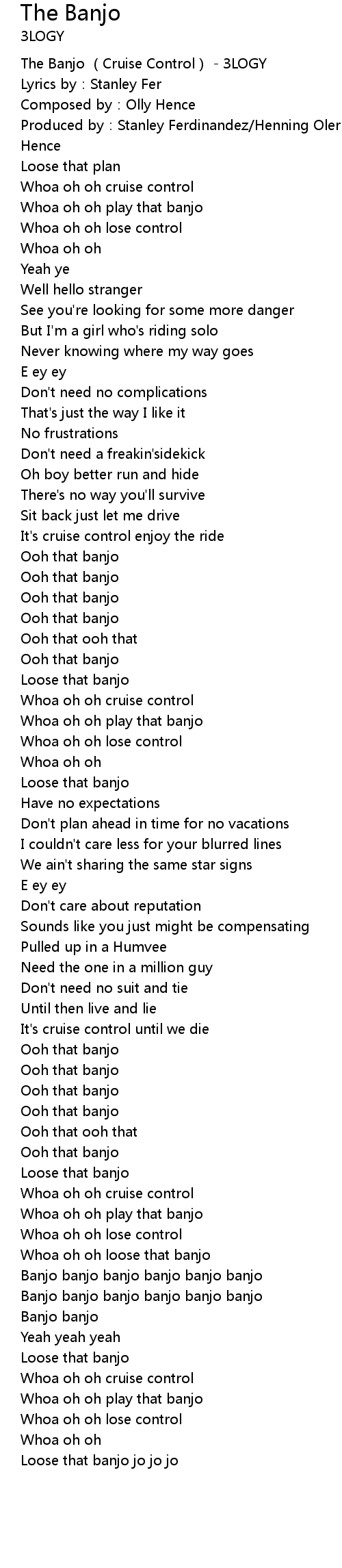 | [00:00.10] | The Banjo (Cruise Control) - 3LOGY |