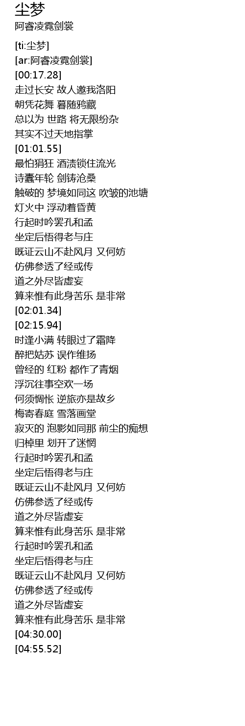 | [04:17.82] | 道之外尽皆虚妄 |