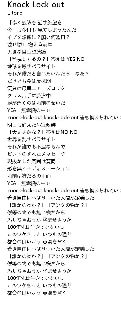 | [01:34.640] | knock-lock-out knock-lock-out 書き換えられていく |