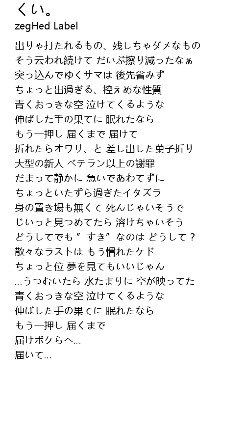 | [03:20.43] | …うつむいたら 水たまりに 空が映ってた |