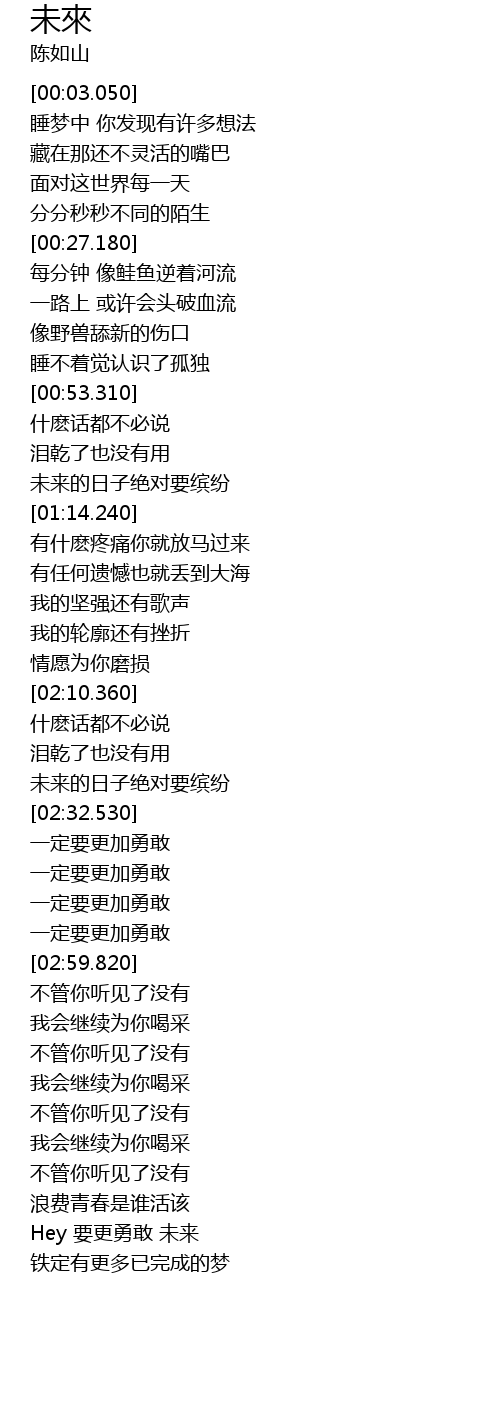 | [04:53.270] | Hey 要更勇敢 未来 |