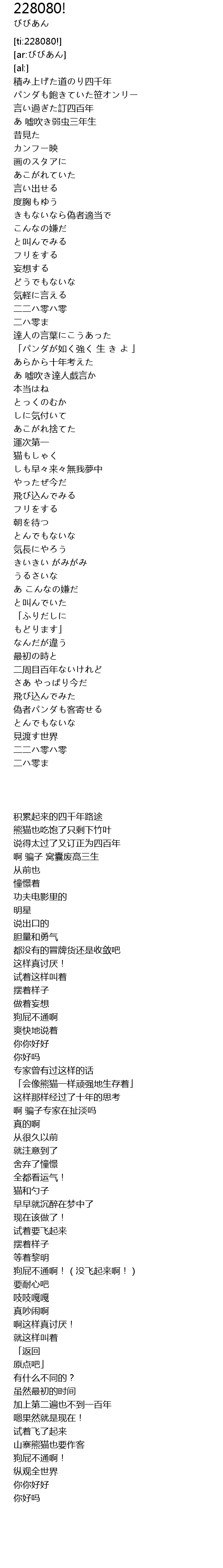 | [01:19.88] | 「パンダが如く強く 生 き よ 」 |