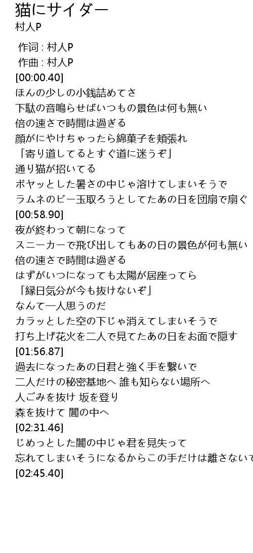 | [00:00.000] | 作词 : 村人P |
