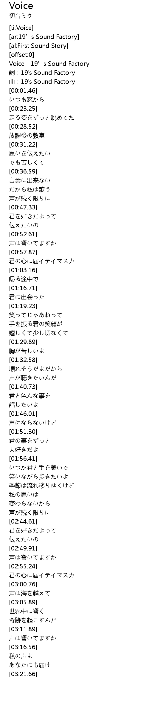 | [00:00.06] | Voice 19' s Sound Factory |