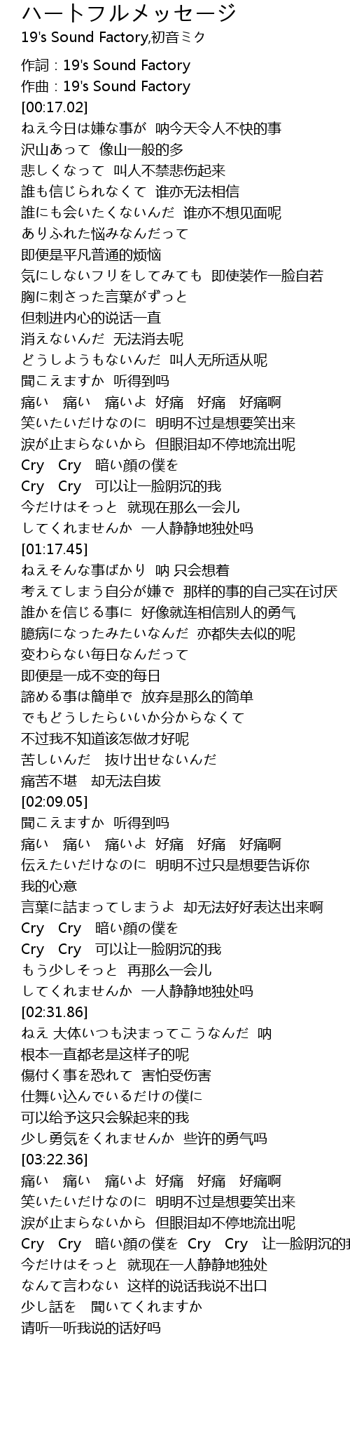 | [03:25.20] | 痛い 痛い 痛いよ 好痛 好痛 好痛啊 |