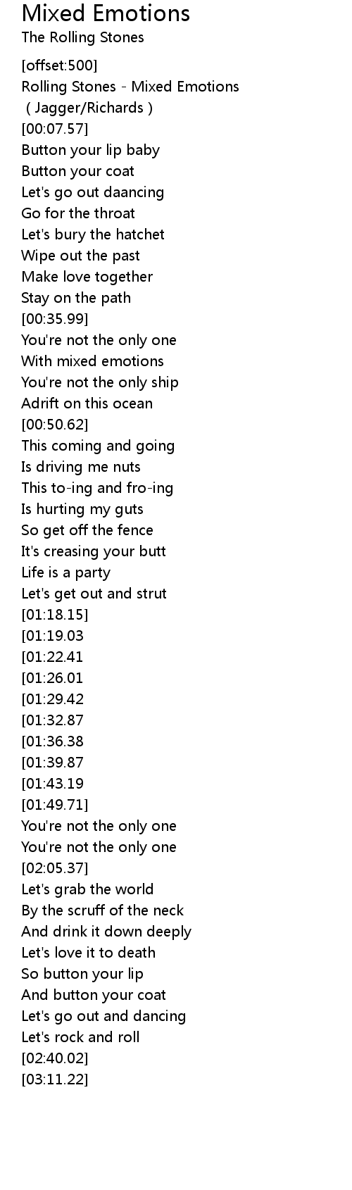 | [00:00.00] | Rolling Stones Mixed Emotions |