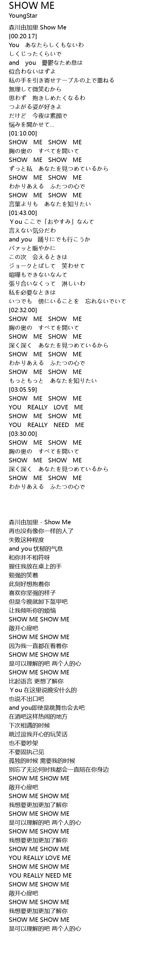 | [00:00.00] | sēn chuān yóu jiā lǐ Show Me |