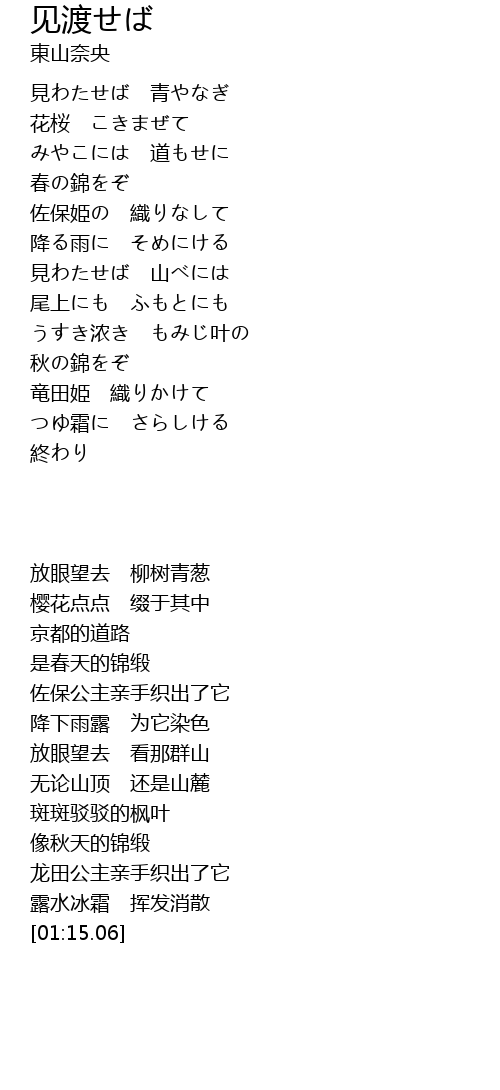 | [00:00.81] | 見わたせば 青やなぎ |
