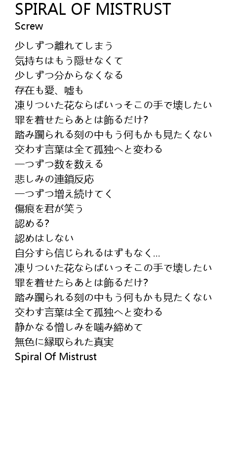 | 歌曲 | SPIRAL OF MISTRUST |