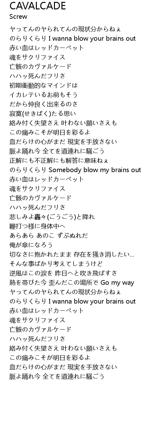 | 脈よ踊れ今 全てを道連れに騒ごう |