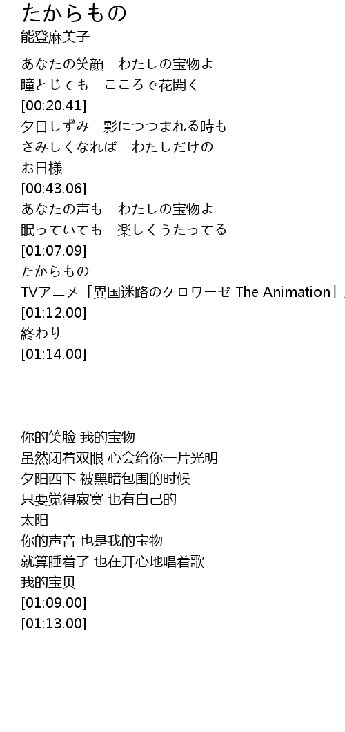 | [00:44.37] | あなたの声も わたしの宝物よ |