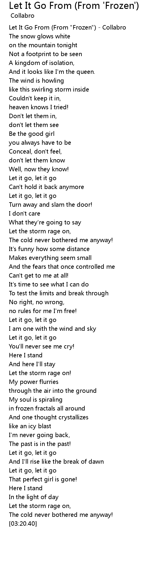 | [00:00.38] | Let It Go From (From "Frozen") - Collabro |