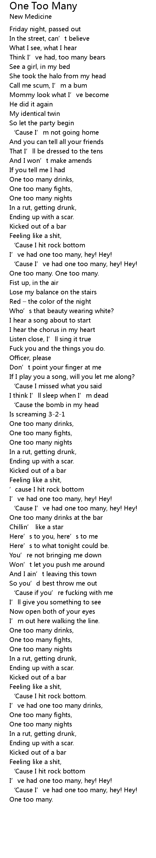| ' Cause I' ve had one too many, hey! Hey! | |