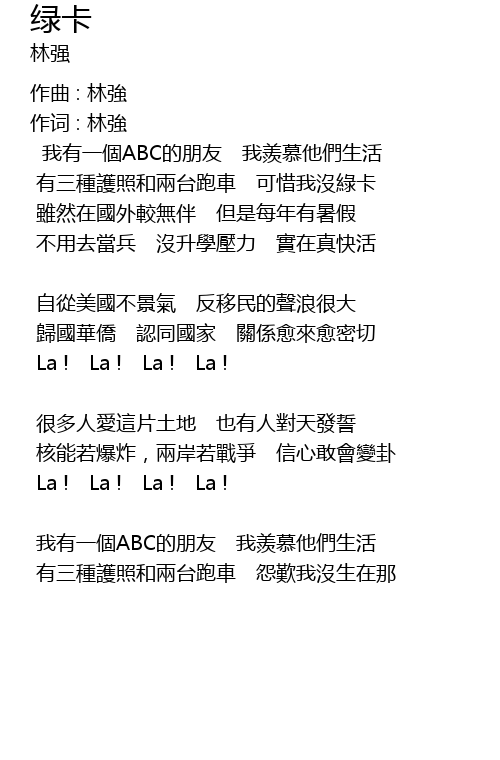 | 作词 : 林強 | |