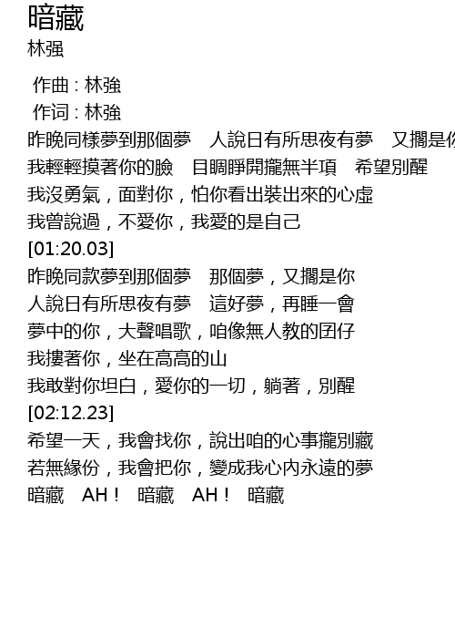 | [02:42.12] | 暗藏 AH ! 暗藏 AH ! 暗藏 |