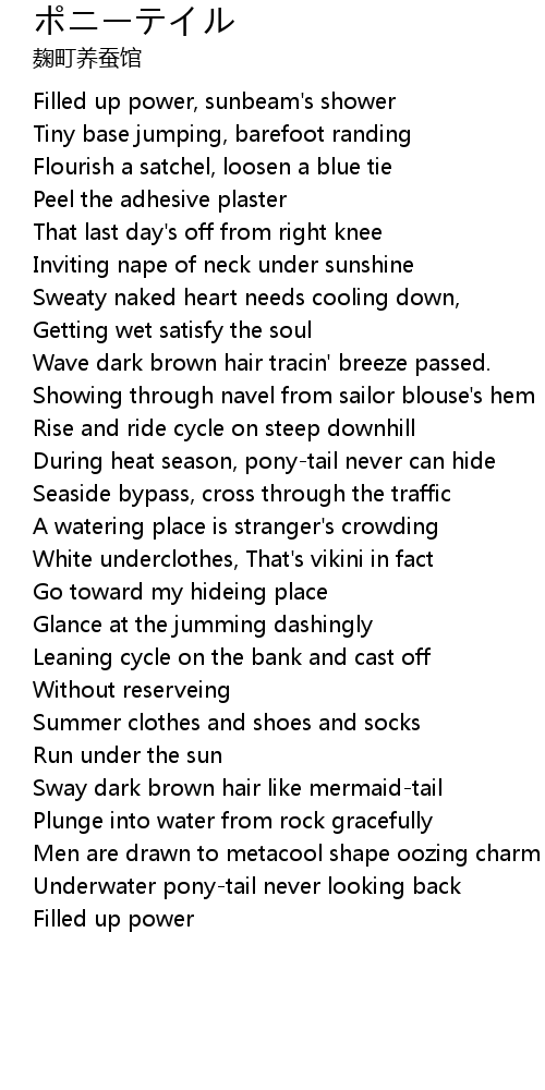 | [00:53.95] | During heat season, pony-tail never can hide |