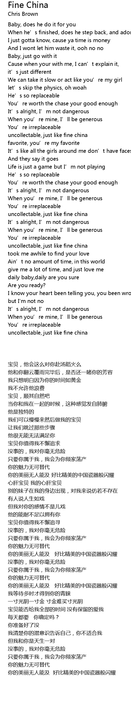 | 歌曲 | Fine China |