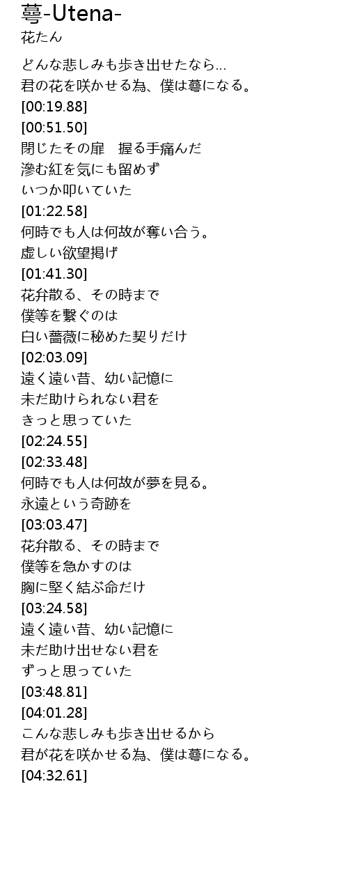 | [04:19.70] | 君が花を咲かせる為、僕は蕚になる。 |