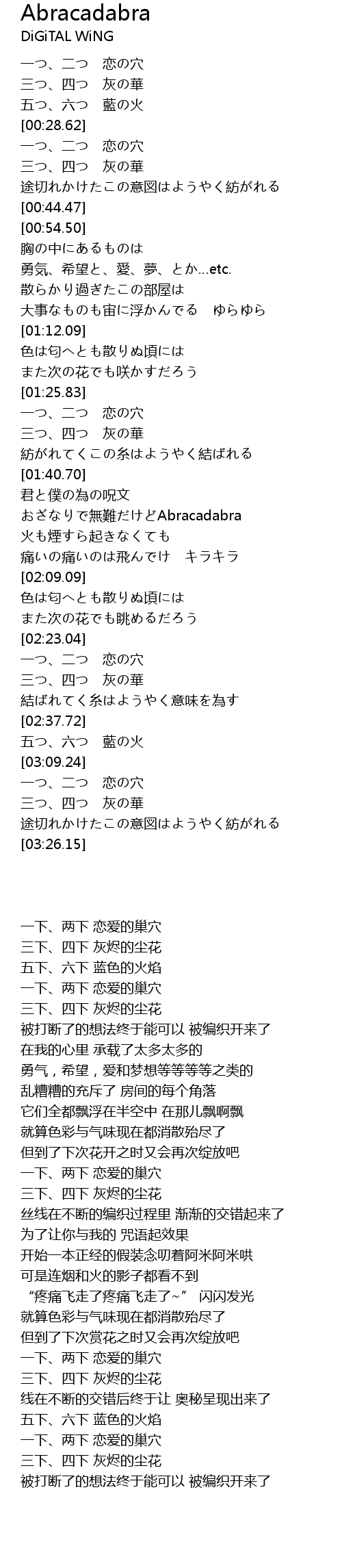| [01:57.98] | おざなりで無難だけどAbracadabra |