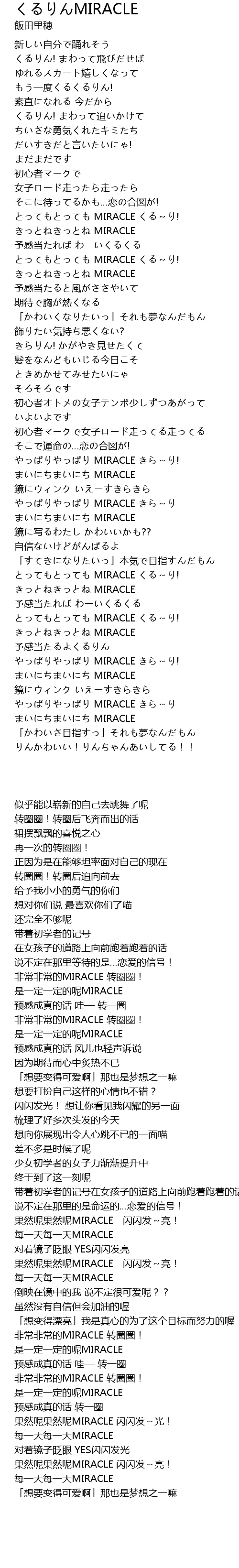 | [01:26.340] | とってもとっても MIRACLE くる~り! |