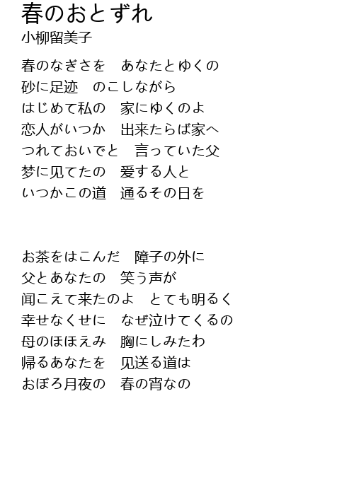 春のなぎさを あなたとゆくの |