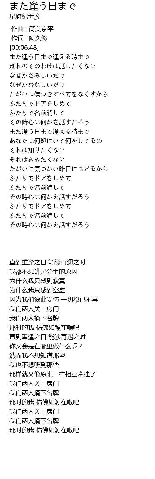 | [00:15.61] | 直到重逢之日 能够再遇之时 |