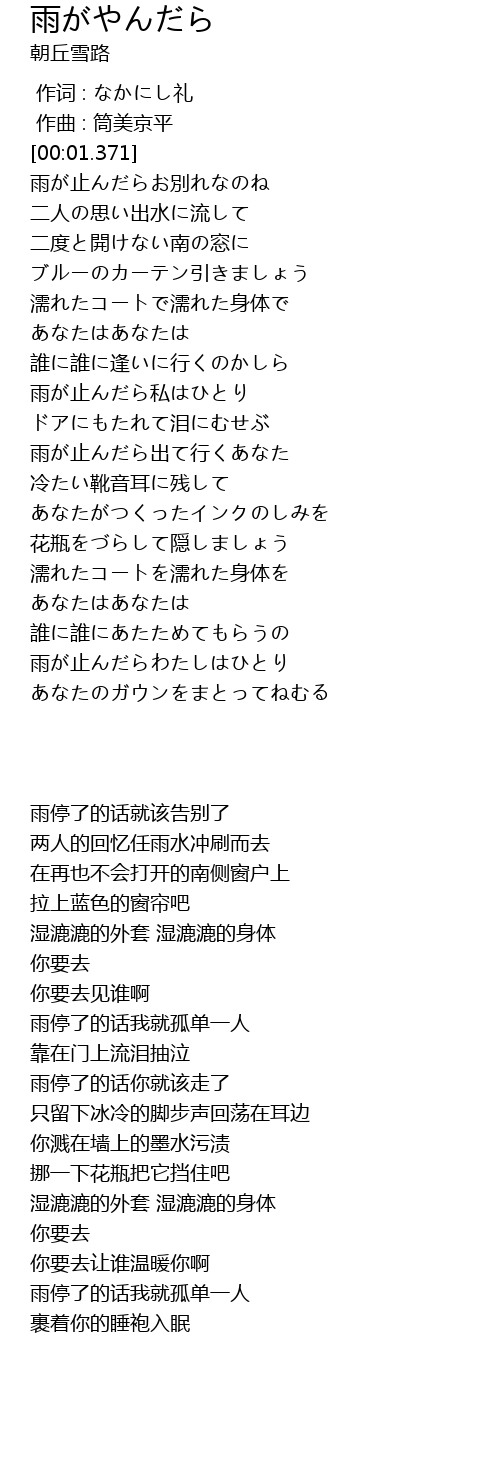 | [02:25.881] | 雨が止んだらわたしはひとり |