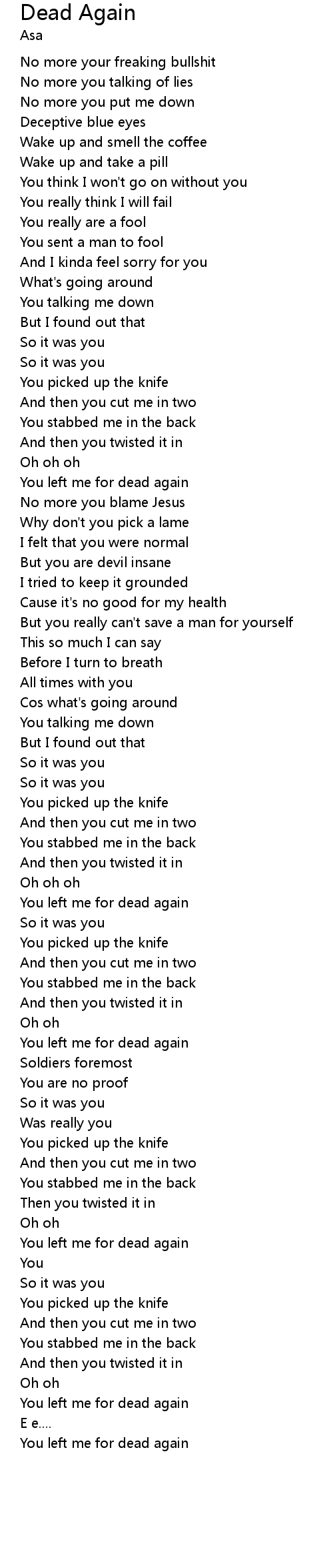 You left me for dead again |