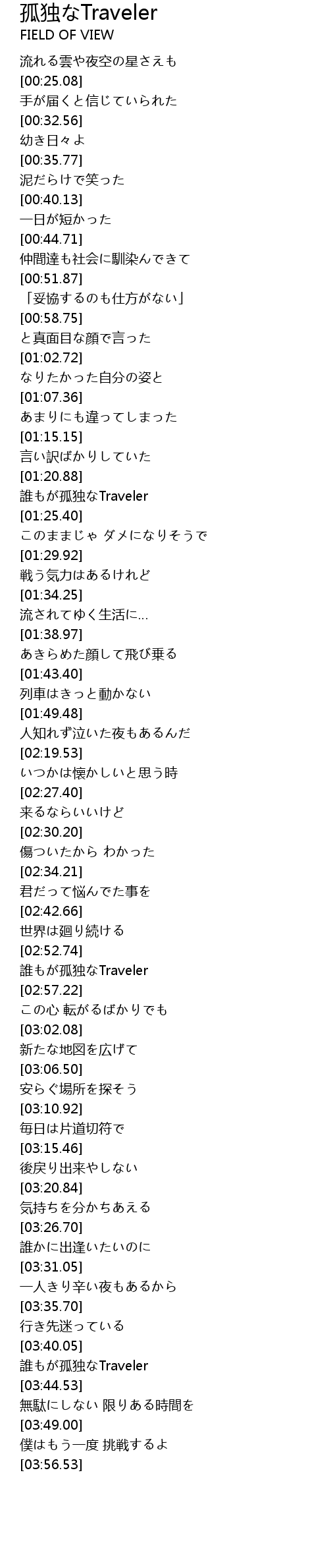 | [03:40.27] | 誰もが孤独なTraveler |