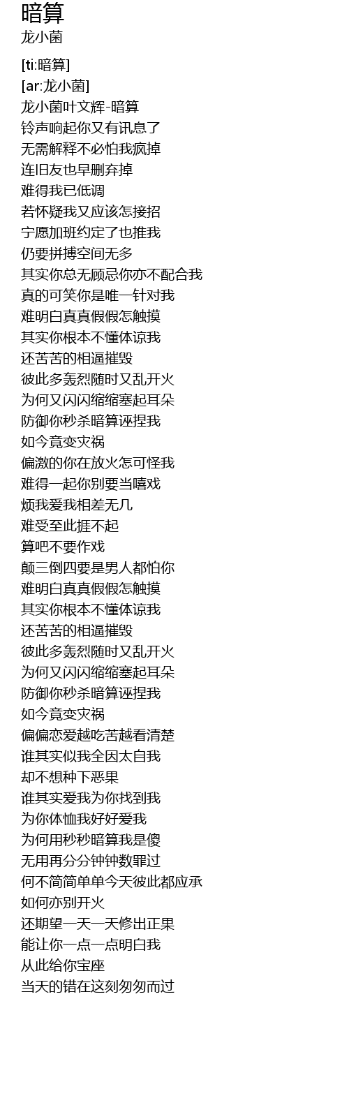 | [00:00.866] | 龙小菌叶文辉-暗算 |