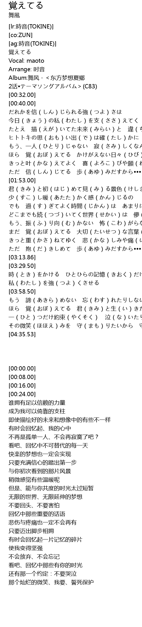 | [00:24.00] | Album:舞风-<东方梦想夏郷 2话•テーマソングアルバム>(C83) |