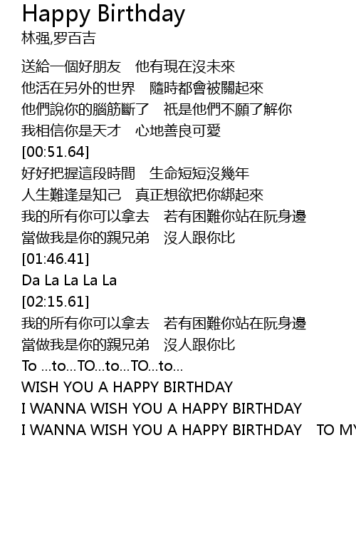 | [03:14.06] | WISH YOU A HAPPY BIRTHDAY |